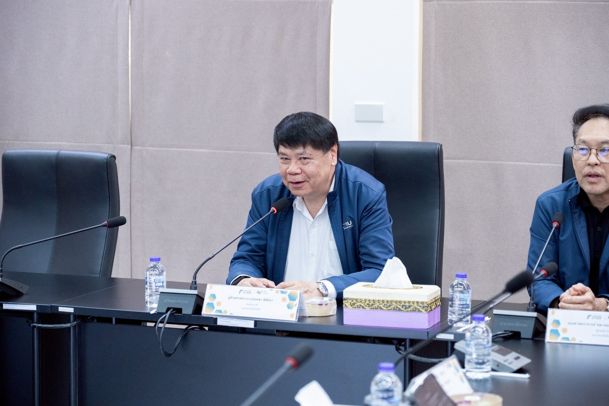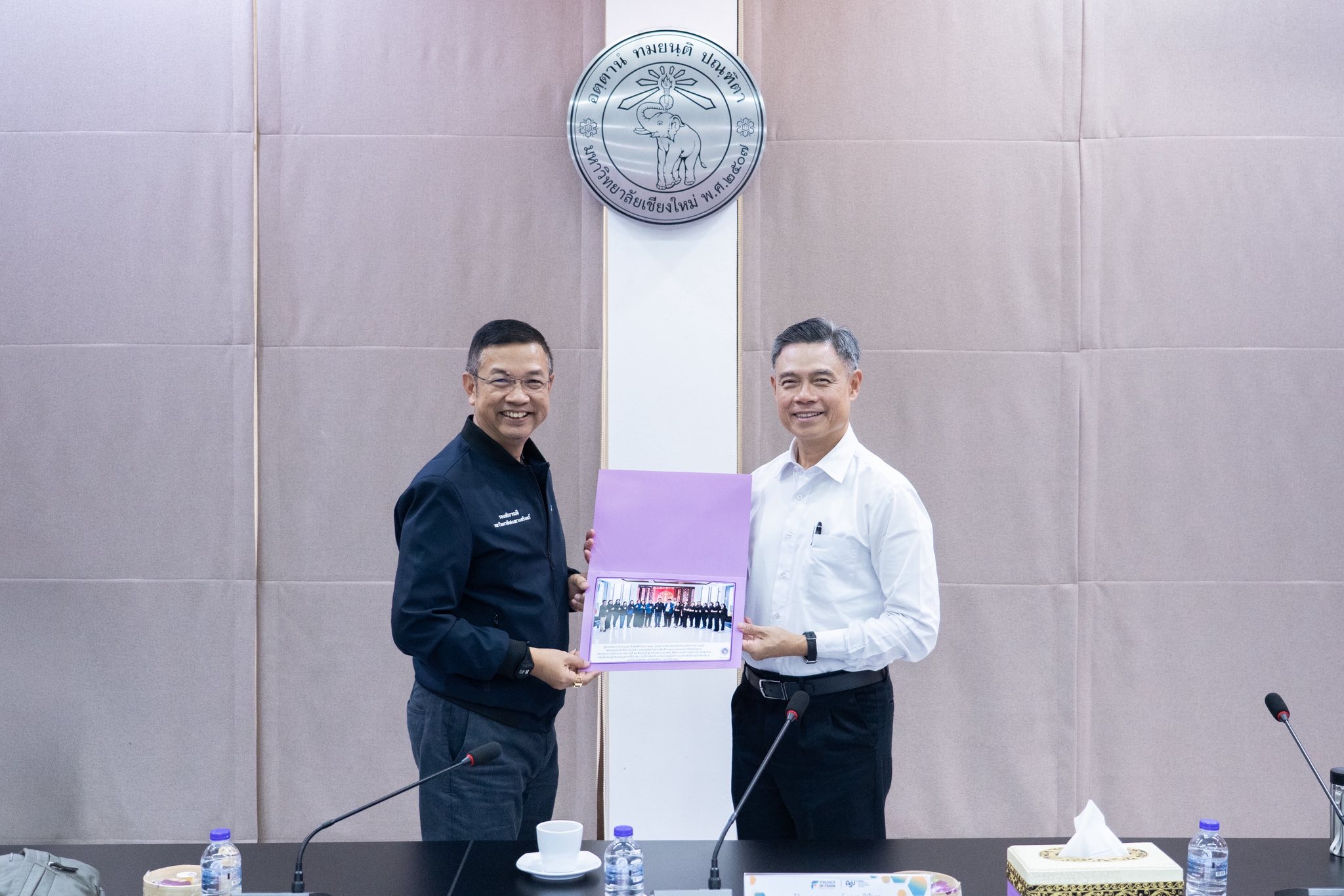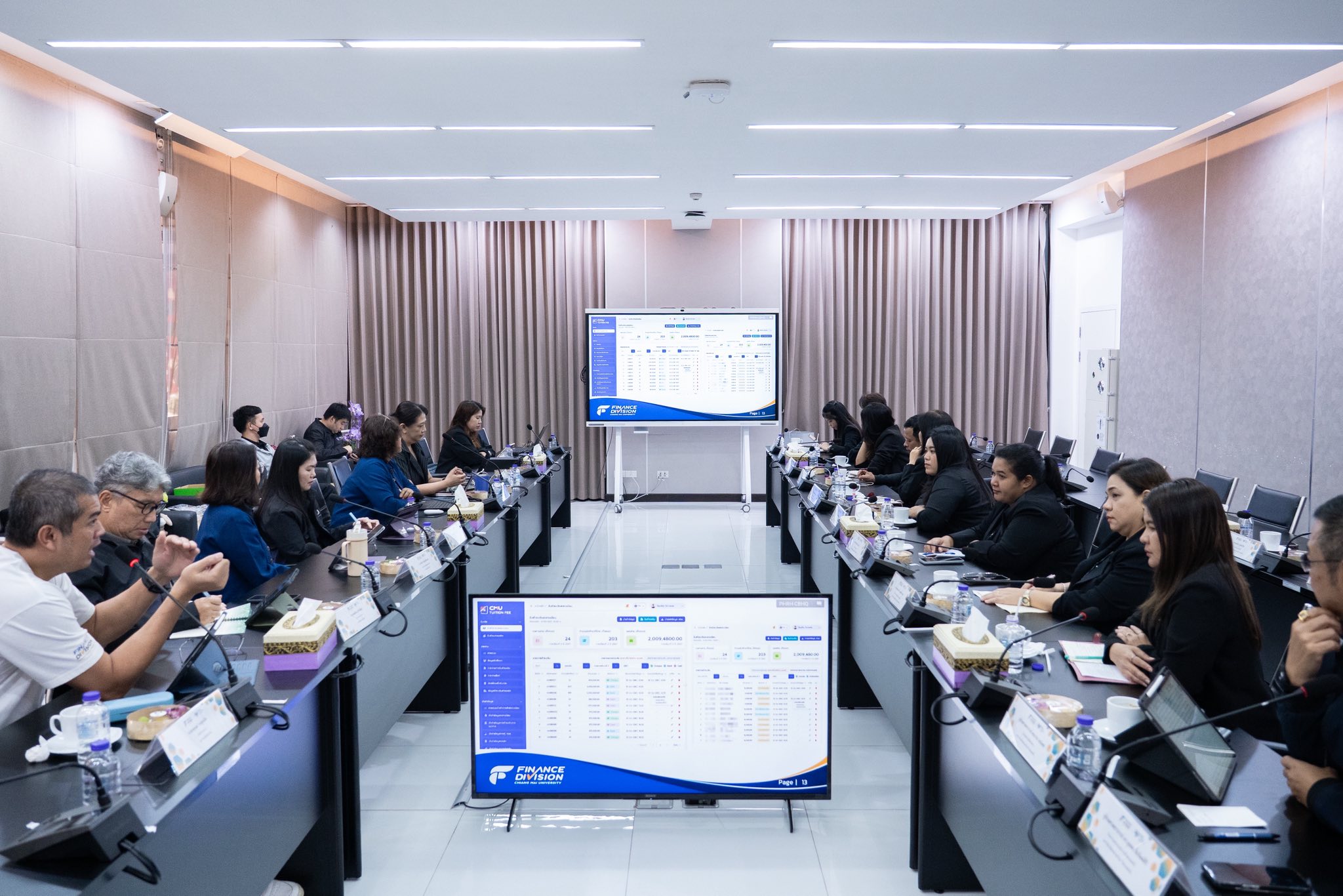 ศาสตราจารย์ ดร.นพ.พงษ์รักษ์ ศรีบัณฑิตมงคล อธิการบดีมหาวิทยาลัยเชียงใหม่ ผู้ช่วยศาสตราจารย์ ทศพร พิชัยยา รองอธิการบดี ผู้ช่วยศาสตราจารย์ ดร.ธัญญานุภาพ อานันทนะ รองอธิการบดี พร้อมด้วย รองศาสตราจารย์ นายแพทย์รณภพ เอื้อพันธเศรษฐ ผู้ช่วยอธิการบดี และบุคลากรกองคลัง ร่วมให้การต้อนรับ ผู้ช่วยศาสตราจารย์ ดร.จุมพล ชื่นจิตต์ศิริ รักษาการแทนรองอธิการบดีวิทยาเขตตรัง มหาวิทยาลัยสงขลานครินทร์ พร้อมคณะบุคลากรจากงานบัญชี การเงินและพัสดุ ในโอกาสเข้าศึกษาดูงานและแลกเปลี่ยนเรียนรู้ด้านระบบการบริหารงานการเงิน บัญชี และพัสดุ ของมหาวิทยาลัยเชียงใหม่ เพื่อศึกษาแนวปฏิบัติที่เป็นเลิศ (Best Practices) สำหรับนำไปประยุกต์ใช้ในการลดขั้นตอนการทำงาน (Lean Process) และเพิ่มประสิทธิภาพในการบริหารจัดการทรัพยากร ณ ห้องประชุมผู้บริหาร 2 อาคารสำนักงานมหาวิทยาลัย 1 มหาวิทยาลัยเชียงใหม่ ในวันศุกร์ที่ 20 กุมภาพันธ์ 2569
